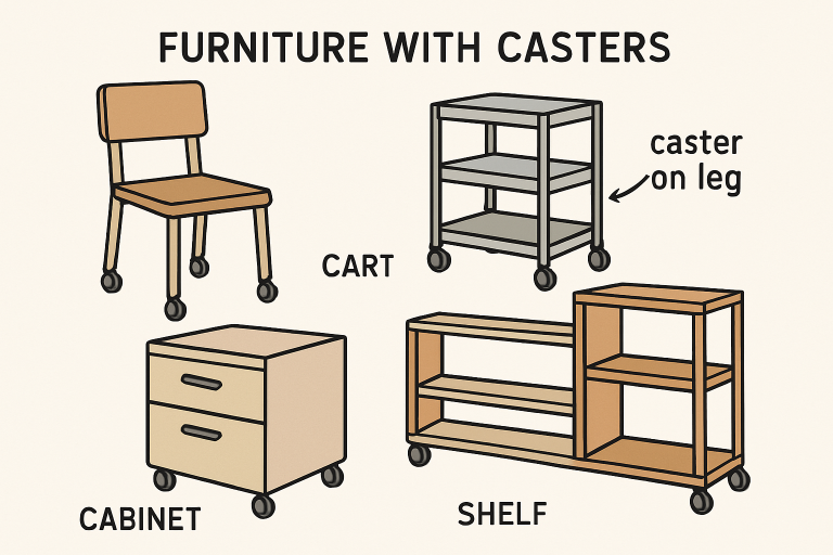 • Casters enhance the mobility and functionality of furniture and equipment.